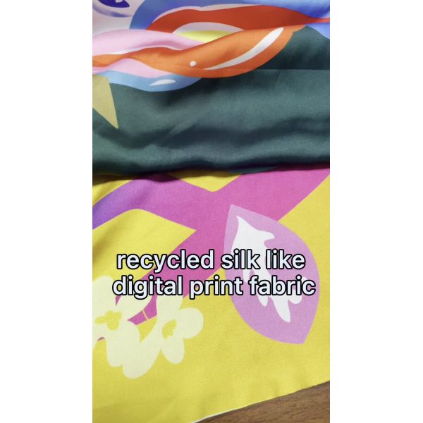 OEM soft smooth digital printing recycled satin silk like 50D polyester fabric for scarf Images |